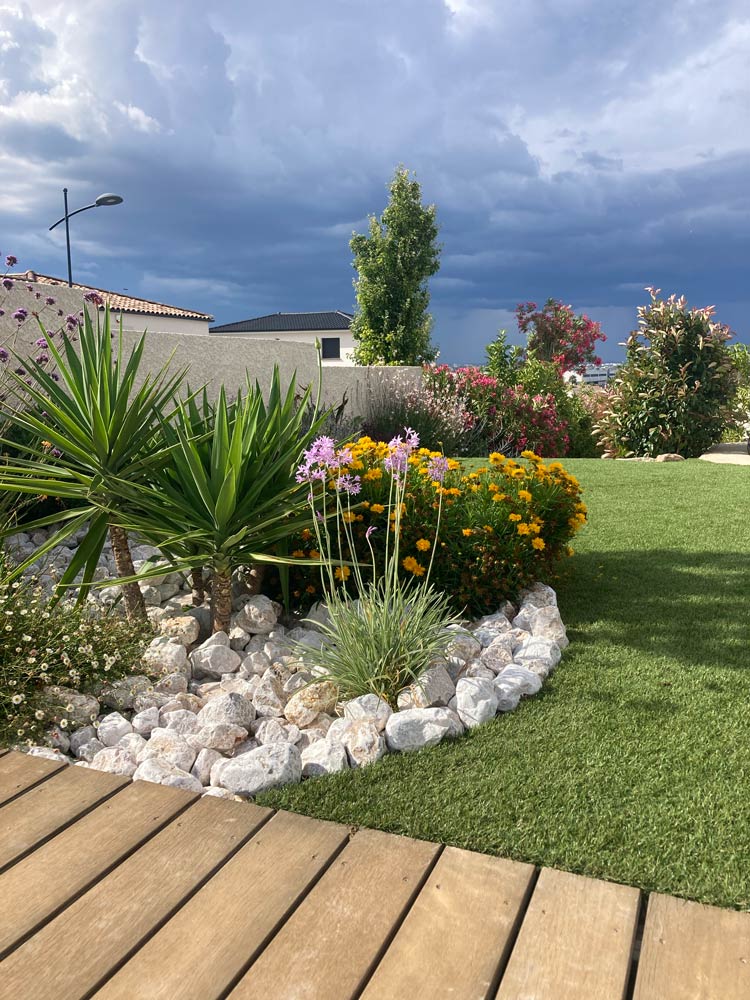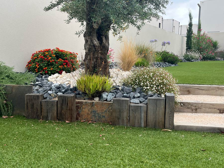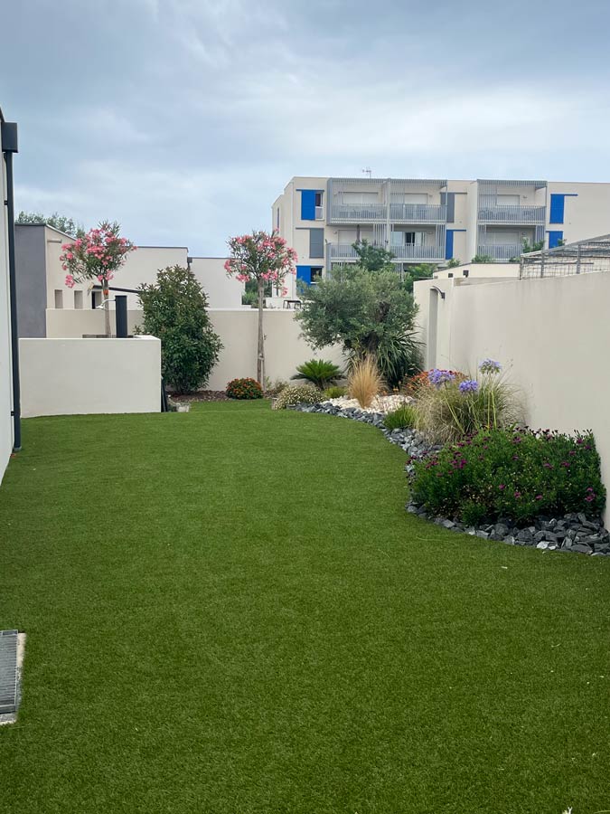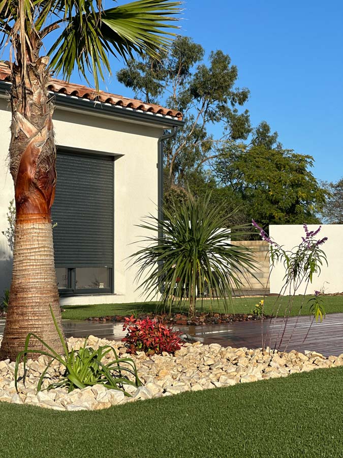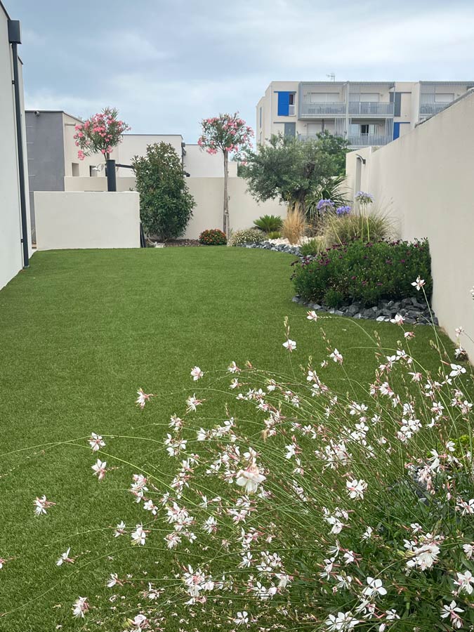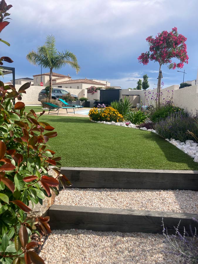 À Sauvian, Design Paysage conçoit et réalise des jardins méditerranéens, des terrasses, des allées, des massifs minéraux et des espaces extérieurs pratiques à vivre.