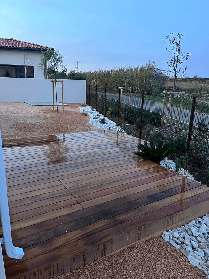 Le travail de paysagiste s’adapte à tous les projets : création complète d’un extérieur, rénovation d’une entrée, pose d’un ombrage, aménagement d’un massif ou d’une terrasse bois. L’essentiel est de créer un espace clair, fonctionnel et agréable.