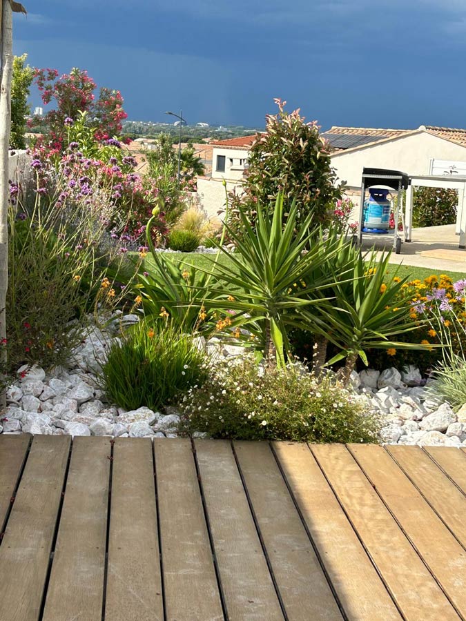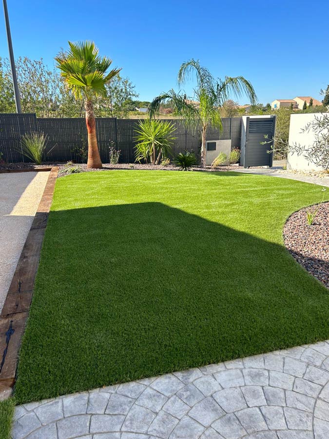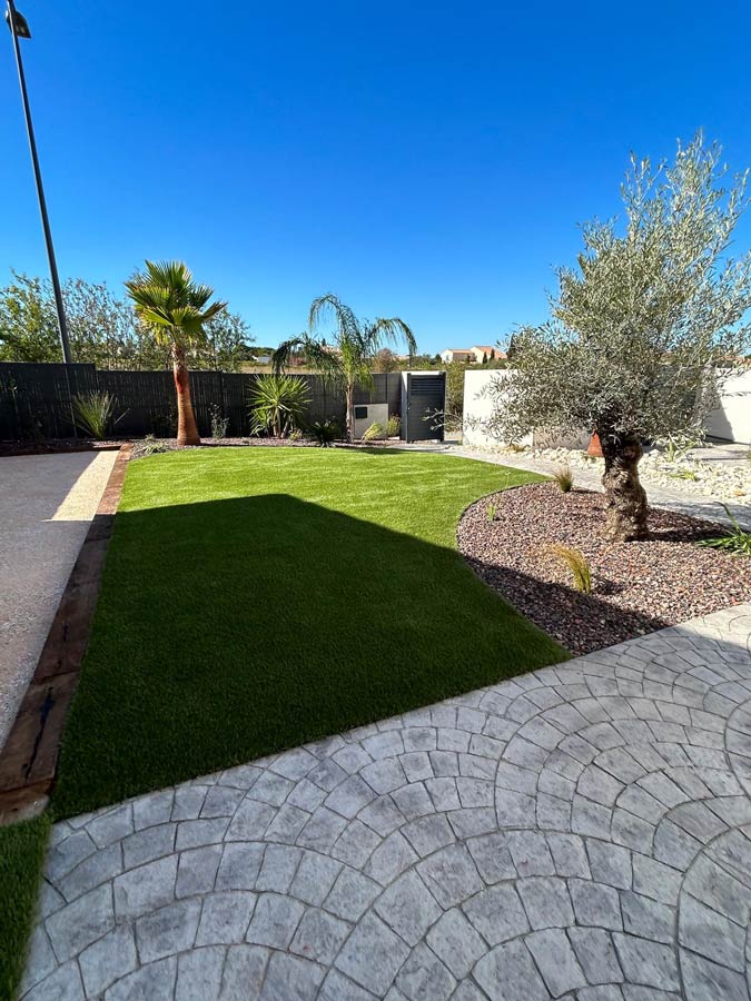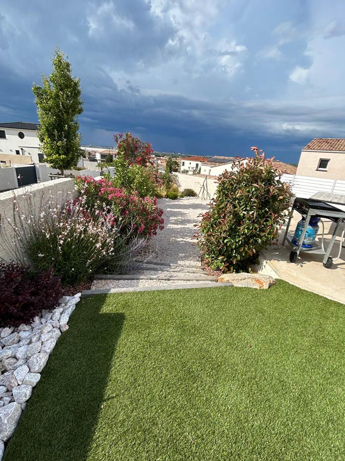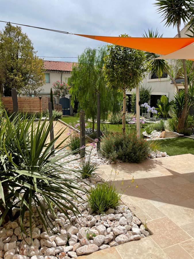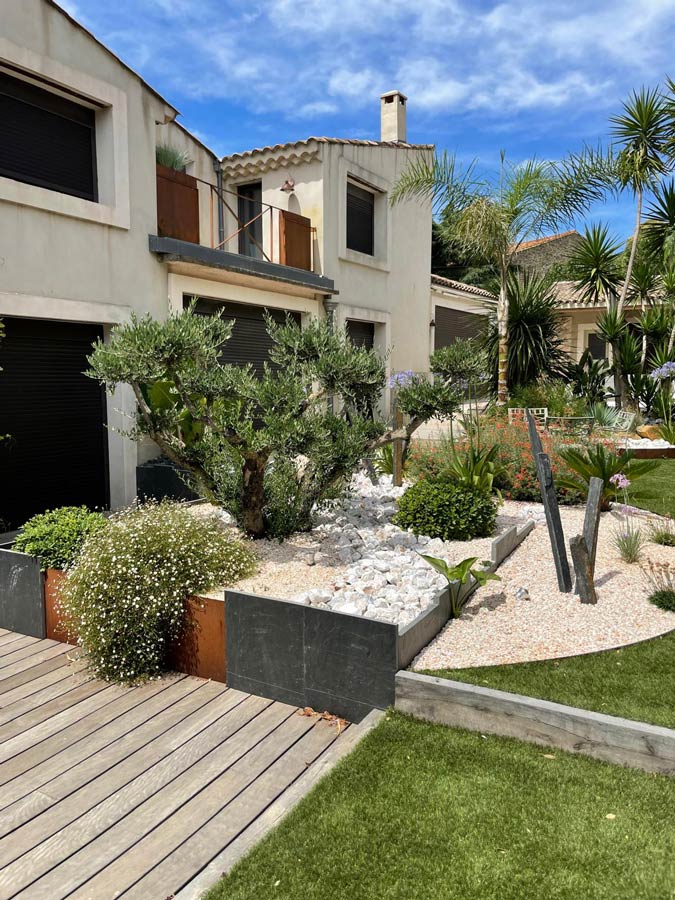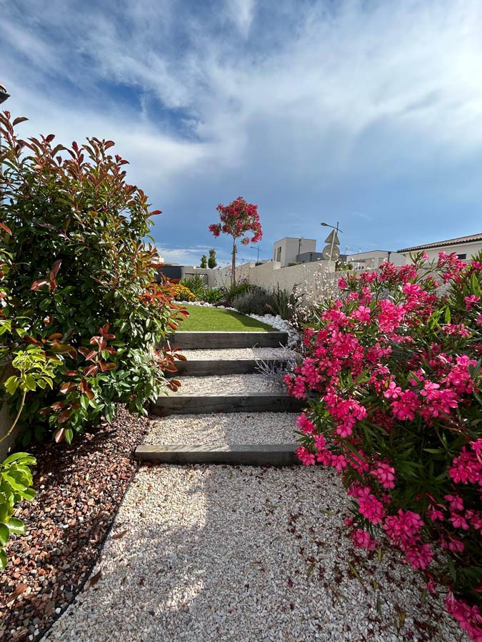 Design Paysage conçoit et réalise des jardins adaptés au climat méditerranéen, en alliant praticité, circulation fluide et rendu esthétique.