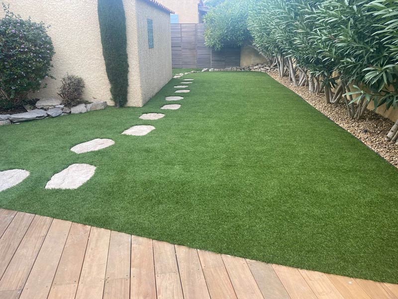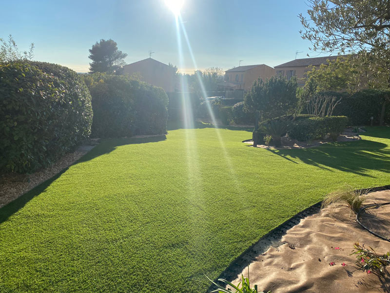 Une installation de gazon artificiel apporte de vrais avantages, notamment dans le climat méditerranéen.