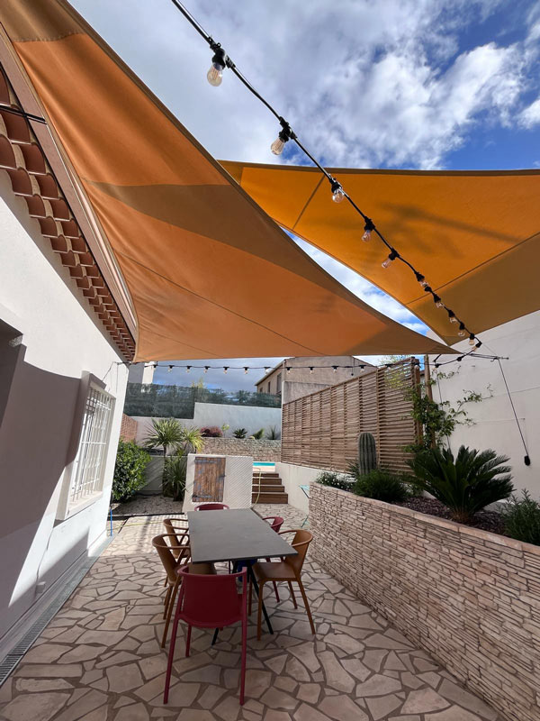 Les voiles d’ombrage sont une solution souple, esthétique et adaptable. Elles permettent de couvrir rapidement une terrasse ou un coin détente sans alourdir l’espace visuel.