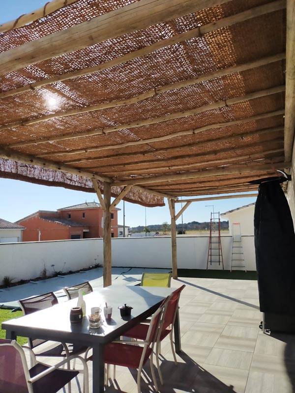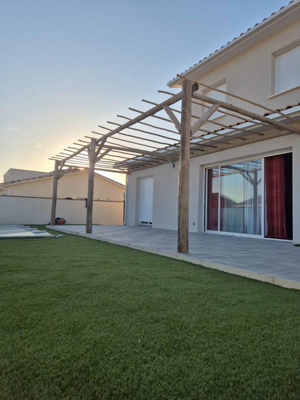 Particulièrement appréciées dans les jardins du Biterrois, les pergolas en eucalyptus offrent un style chaleureux, authentique et durable.